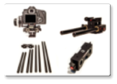 Um digitale Spiegelreflexkameras [DSLR] auch bei professionellen Produktionen einsetzen zu können, haben wir ein Camera Rig System mit einem Follow Fokus, Fluid Zoomhebel sowie einer Mattebox entwickelt, welche die Vorteile der Leichtbauweise mit Kompaktheit, Stabilität und hoher Zuverlässigkeit verbinden.
